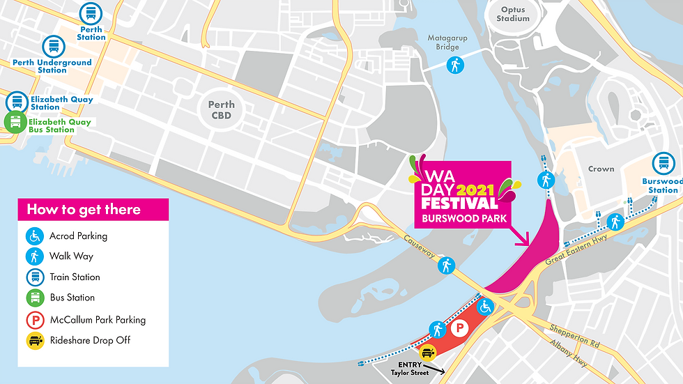 SOTA is just one part of the WA Day celebrations, so here is a map of how to get to the festival, including where to park and get dropped off/picked up.